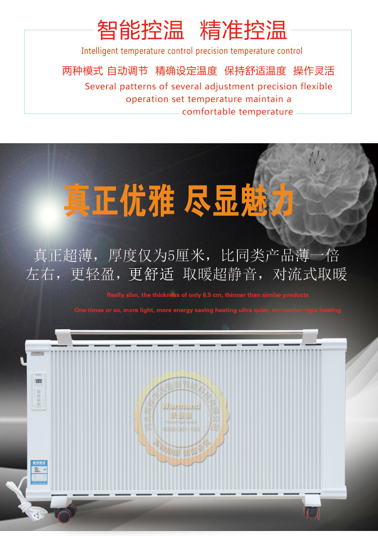 沃曼德碳晶電曖器,分為壁掛式、地暖式,功率從900-1500W,造型美觀大方、結(jié)構(gòu)堅(jiān)固耐用,